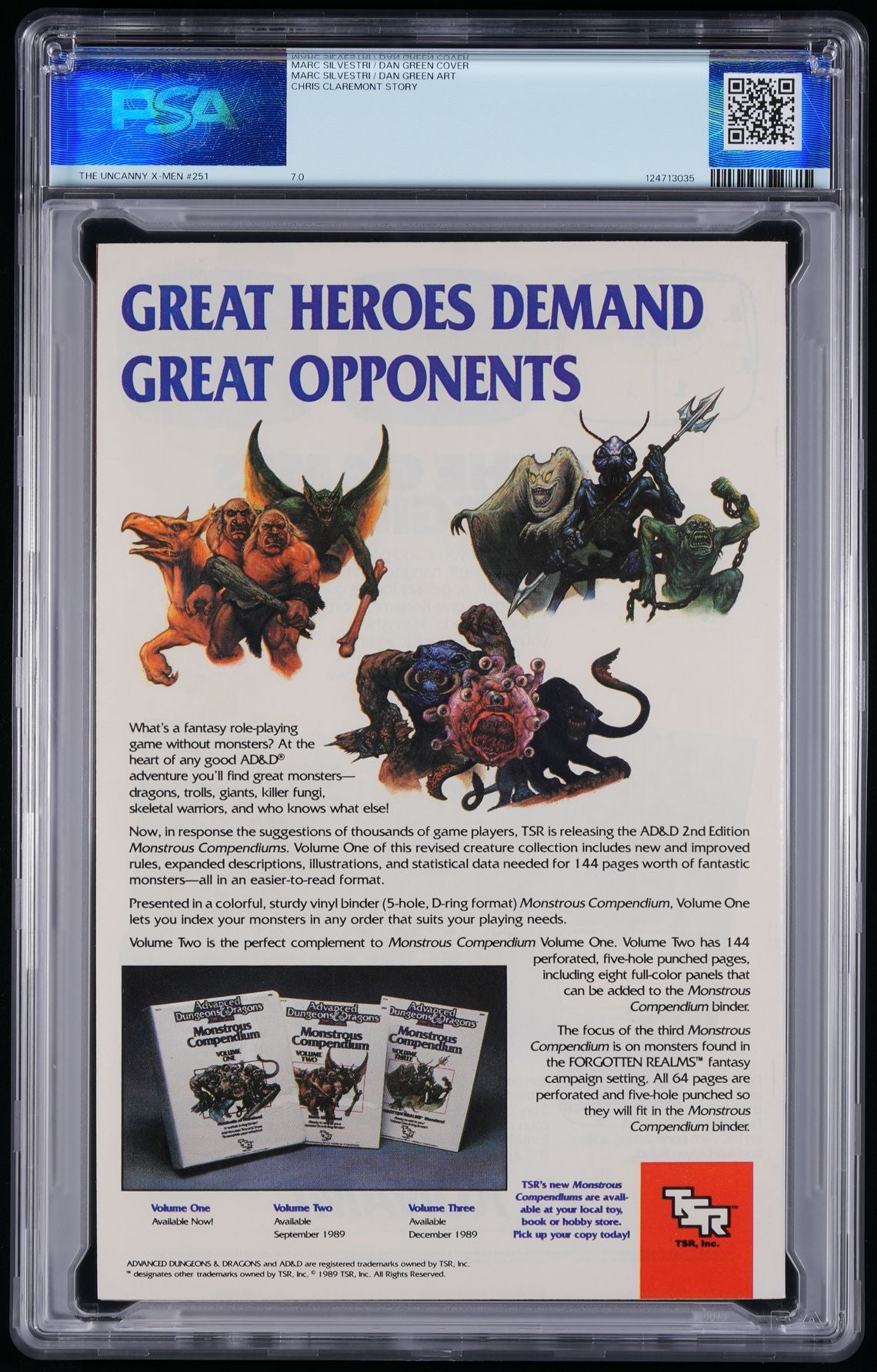 Step into comic history with the 1989 Uncanny X-Men #251 newsstand copy, graded PSA 7.0. Featuring Marc Silvestri’s legendary cover art and crisp white pages, this issue is a must-have for collectors and fans alike. Perfect for diving into X-Men’s thrilling world while exploring modern crypto investments. Grab your slice of Web3-powered comic excitement today!